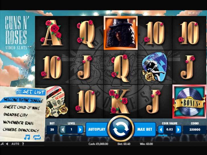 Jugar a la tragaperras Guns N Roses también representa todo un deleite, ya que desde el principio nos sentiremos fascinados, más si los apostadores son completamente fanáticos de la banda; se puede decir sin temor a equivocación que se trata de una tragaperras que hace honor a la banda.